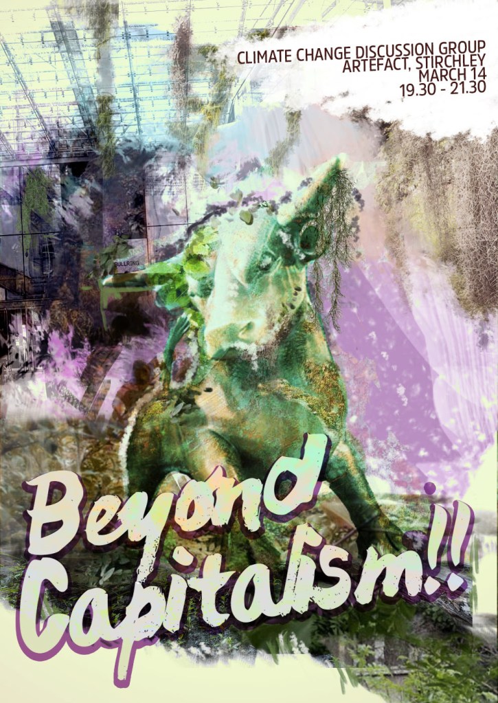 Beyond Capitalism was a climate change discussion group that took place over a number of weeks at Artefact Projects, Stirchley. Hosted by artist Dale Hipkiss. I was commissioned to produce a number of posters for each meeting